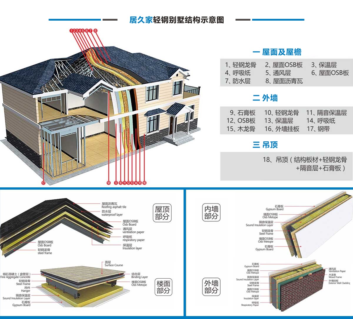 居久家輕鋼別墅隸屬于四川萬建城建筑工程有限公司,集科研、設計、咨詢、加工、生產安裝為一體。一直致力于新型輕鋼結構房屋的研究、開發和應用,倡導房屋建筑的設計和應用在標準化、模塊化、通用化、規模化生產的同時,實現人居環境的個性化、人性化、以及健康和舒適。 公司目前引進具有國內先進水平輕鋼結構房屋建筑技術和生產線,標準化、精細化和定制化設計、制造、安裝輕鋼結構房屋。不僅能夠提供風格各異的別墅建筑,同樣能夠提供行業標準的輕鋼樓宇建筑及建筑群。居久家裝配式房屋技術體系是高效節能型綠色建筑體系,各項建筑物理性能卓越,處于業內先進水平,能夠為客戶提供全程模塊化綠色建筑集成解決方案。